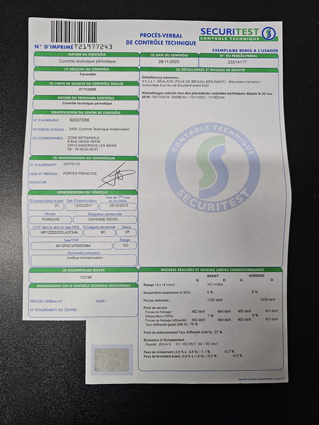 le 28/11/2023 à 132198kms : Contrôle technique vierge